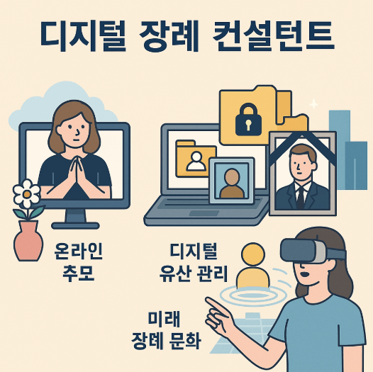 장례 문화는 빠르게 진화하고 있습니다. 메타버스를 통한 장례식, 인공지능을 활용한 고인 기억 재현, 3D 추모 공간 등 새로운 형태의 장례가 속속 등장하고 있습니다. 이러한 변화는 고인을 기억하는 방식에 있어서도 보다 개성 있고 창의적인 표현을 가능하게 하며, 유족에게도 정서적인 만족감을 줄 수 있습니다. 디지털 장례 컨설턴트는 이러한 새로운 장례 문화를 기획하고 실현하는 데 핵심적인 역할을 합니다. 고인의 생전 기록을 토대로 맞춤형 추모 콘텐츠를 설계하고, 유족과 함께 장례의 방향을 논의하며, 종교적 가치나 문화적 요소를 반영한 다양한 디지털 추모 방식을 제안합니다. 또한, 장례 절차 전반을 온라인으로 운영하고, 친환경적인 디지털 방식으로 전환하는 업무도 함께 수행합니다. 디지털 장례 컨설턴트는 단순한 기획자를 넘어 감정 조율자이자 디지털 설계자로서, 미래 장례 산업을 이끄는 중요한 전문가로 자리 잡고 있습니다.